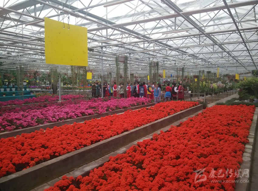 考察團坐上觀光電瓶車,穿行在產(chǎn)業(yè)園內(nèi)3000余畝的百合及各種花卉中間,香氣宜人,流連忘返;走進(jìn)單棟面積達(dá)10000平米的14個連棟智能溫室花卉大棚,妖艷的水仙,高挑的百合,艷麗的百合,白色的、黃色的、紅色的、粉色的,讓人眼花繚亂,置身于花海中的你,一年四季都有花看、有花賞。
