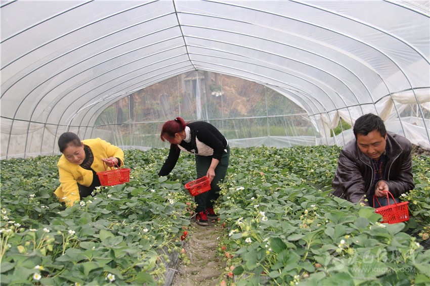 興隆鎮(zhèn)沈村村民在自家草莓大棚里采摘草莓。