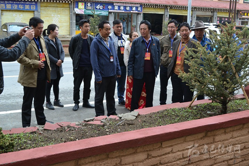 此次視察采取聽取匯報、實地察看和集中座談相結(jié)合的方式進行。圍繞“綠水青山就是金山銀山”的理念,代表們乘坐大巴車實地察看了國道“318”沿線和縣城及周邊綠化工程項目。按照全縣生態(tài)農(nóng)業(yè)產(chǎn)業(yè)布局,視察了甲洼瑪吉阿米花園農(nóng)莊、康藏陽光農(nóng)業(yè)產(chǎn)業(yè)基地和濯桑人工花海。每到一處,代表們都詳細了解了項目建設(shè)情況、運營管理、配套設(shè)施和利益鏈接機制等情況。