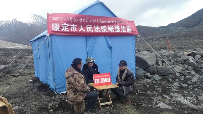康定市人民法院把巡回法庭搬上山, 在一個(gè)簡(jiǎn)陋的帳篷外,法律服務(wù)站(點(diǎn))設(shè)在值勤點(diǎn),一手抓穩(wěn)定、一手抓審判?!皫づ穹ㄍァ钡姆ü僭诖迕窦议T(mén)口審案子,把嚴(yán)肅的法理融入知心話告訴當(dāng)事人,拉近與當(dāng)事人間的距離,更易于化解矛盾。農(nóng)牧民群眾在春播秋收季節(jié)、蟲(chóng)草采挖季節(jié)和冬季牧場(chǎng)搬遷時(shí)往往忙于勞作,很難抽出時(shí)間到法院參加訴訟,因此影響了他們通過(guò)司法途徑維護(hù)自己的合法權(quán)益。采用“帳篷法庭”、巡回審理的方式就地辦案,及時(shí)調(diào)處矛盾糾紛,為群眾提供了便捷的司法服務(wù)。