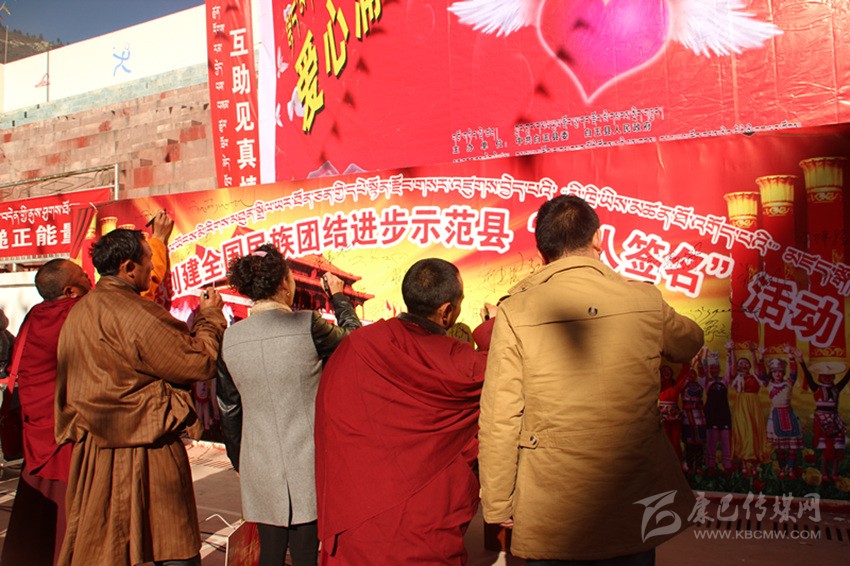 其實(shí),在白玉,像澤稱降措這樣感人肺腑的故事絕非個(gè)案。采訪中,筆者細(xì)細(xì)梳理五年來白玉的創(chuàng)建舉措與成績,完全可以用“務(wù)實(shí)”“扎實(shí)”這四個(gè)字來形容。自2014年創(chuàng)建活動(dòng)啟動(dòng)以來,縣委、縣政府嚴(yán)格按照“三年創(chuàng)建、四年提升”要求,緊扣“八進(jìn)活動(dòng)、共建對子”兩個(gè)關(guān)鍵,聚焦“民族團(tuán)結(jié)促發(fā)展、民族團(tuán)結(jié)促穩(wěn)定、民族團(tuán)結(jié)促民生”三大目標(biāo),采取“精準(zhǔn)安排、精準(zhǔn)施策、精心打造、精細(xì)管理”四項(xiàng)舉措,并通過層層簽訂目標(biāo)責(zé)任書和層層落實(shí)創(chuàng)建標(biāo)準(zhǔn)、測評指標(biāo),進(jìn)而形成了“黨委統(tǒng)一領(lǐng)導(dǎo)、黨政齊抓共管、部門各司其職、社會(huì)廣泛參與”的創(chuàng)建工作格局;采取“年度定方案、季度有督查、月月抓推進(jìn)、層層重落實(shí)”的方式,通過召開專題會(huì)、動(dòng)員會(huì)、現(xiàn)場會(huì)、督導(dǎo)會(huì)、匯報(bào)會(huì)等形式,抓問題、添措施、促整改、補(bǔ)短板、求提升,一系列動(dòng)真碰硬的推進(jìn),使得創(chuàng)建工作由“虛”變“實(shí)”;按照“精準(zhǔn)宣講、掛圖作戰(zhàn)、對單宣講、對村消號(hào)、定學(xué)式”的宣講思路,采取“縣到鄉(xiāng)、鄉(xiāng)進(jìn)村、村入戶、寺廟與僧尼”四個(gè)面對面等方式,并結(jié)合常態(tài)化開展的“四下鄉(xiāng)”活動(dòng),廣泛學(xué)習(xí)宣傳黨的民族理論、宗教政策、法律法規(guī)以及各項(xiàng)惠農(nóng)惠民政策。五年來,全縣累計(jì)出動(dòng)宣講服務(wù)人員1180人次,開展宣講宣教、“四下鄉(xiāng)”活動(dòng)以及民族團(tuán)結(jié)“八進(jìn)”活動(dòng)多達(dá)988場次,覆蓋基層干部、農(nóng)牧民群眾和及寺廟近8萬人次,發(fā)放各類宣傳資料2.3萬余份、圖書光盤4500余本(張),贈(zèng)送各種書籍4130余冊,放映電影152場次;在主要街道、繁華路段、出租車頂屏、燈箱燈桿以及干線公路沿線堡坎,設(shè)置LED屏、宣傳牌、滾動(dòng)標(biāo)語和墻體標(biāo)語,推送各類創(chuàng)建信息上萬余條,在各機(jī)關(guān)、單位、醫(yī)院、學(xué)校、寺廟、鄉(xiāng)鎮(zhèn)、村組(社區(qū))設(shè)置民族團(tuán)結(jié)標(biāo)語、宣傳櫥窗、展板和文化墻,推出各類宣傳欄2145個(gè)、宣傳展板 435個(gè);在縣級(jí)宣傳平臺(tái)開設(shè)專欄,完成各類主題宣傳300余場次;舉辦創(chuàng)建“萬人簽名”、鍋莊節(jié)、演講比賽、籃球友誼賽、知識(shí)競賽、文藝演出等各類民族團(tuán)結(jié)主題活動(dòng)近20場,實(shí)現(xiàn)了創(chuàng)建宣講宣傳宣教全方位、多層面、立體式和廣覆蓋;切實(shí)將民族團(tuán)結(jié)工作與脫貧攻堅(jiān)、基層黨建、群眾工作、鄉(xiāng)村治理、依法治縣等有機(jī)結(jié)合,大力開展干群結(jié)對認(rèn)親、干部聯(lián)寺聯(lián)僧、支部共建共創(chuàng)以及警民共建等活動(dòng);切實(shí)在廣大農(nóng)牧民群眾、幫扶援建隊(duì)伍、宗教寺院、學(xué)校師生、企業(yè)以及部隊(duì)中發(fā)現(xiàn)典型、宣傳典型,進(jìn)而在全縣上下形成了“學(xué)先進(jìn)、趕先進(jìn)、當(dāng)標(biāo)兵”的濃厚氛圍;采取政策傾斜、整合項(xiàng)目、配套資金等措施,狠抓示范點(diǎn)規(guī)范化建設(shè)。目前,全縣所有鄉(xiāng)(鎮(zhèn))、縣級(jí)黨政機(jī)關(guān)、武警部隊(duì),45%以上的村(社區(qū))、企事業(yè)單位和寺廟已成為民族團(tuán)結(jié)進(jìn)步示范地區(qū)或示范單位;……精準(zhǔn)發(fā)力、持續(xù)給力的創(chuàng)建活動(dòng),有效形成了創(chuàng)建活動(dòng)“人人參與、人人推動(dòng)、人人負(fù)責(zé)、人人共享”的喜人局面。