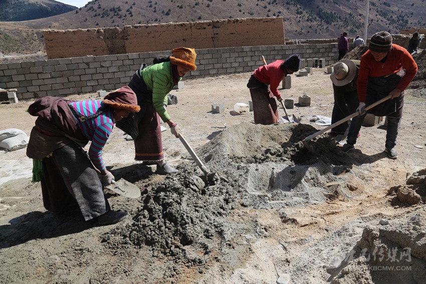 在工程實施中,全組的村民相互幫助,齊心協(xié)力建新房?!白蛱齑蠹?guī)臀野逊孔有薜冒桶瓦m適、漂漂亮亮的。我也來幫四郎曲西建房。這樣你幫我,我?guī)湍?,你幫他,要不了多久,我們這里家家戶戶都會很漂亮。”正在院子里攪拌灰漿的村民格絨多登微笑著說。