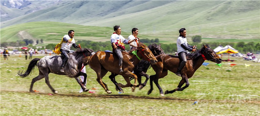 本網(wǎng)訊 傳說中,甘孜縣絨壩岔是格薩爾王駟馬的地方。 6月24日,來自甘孜、德格、爐霍、道孚的218位騎手和馬匹參加了2019年的賽馬比賽,他們將在卡攻鄉(xiāng)境內的草原上上演為期兩天的巔峰對決,為“馬迷”和游客們帶來一場“熱血賽事”。