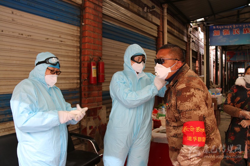 離超市150米處,是道孚農(nóng)貿(mào)市場,市場里很多攤位都空著。記者直往里走,卻被兩個穿著防護服的醫(yī)務(wù)人員攔住了:“同志,測了體溫才能進(jìn)去購物?!彪S即,一個醫(yī)務(wù)人員為記者測量體溫,一個人員在登記表上鄭重地畫上一筆。