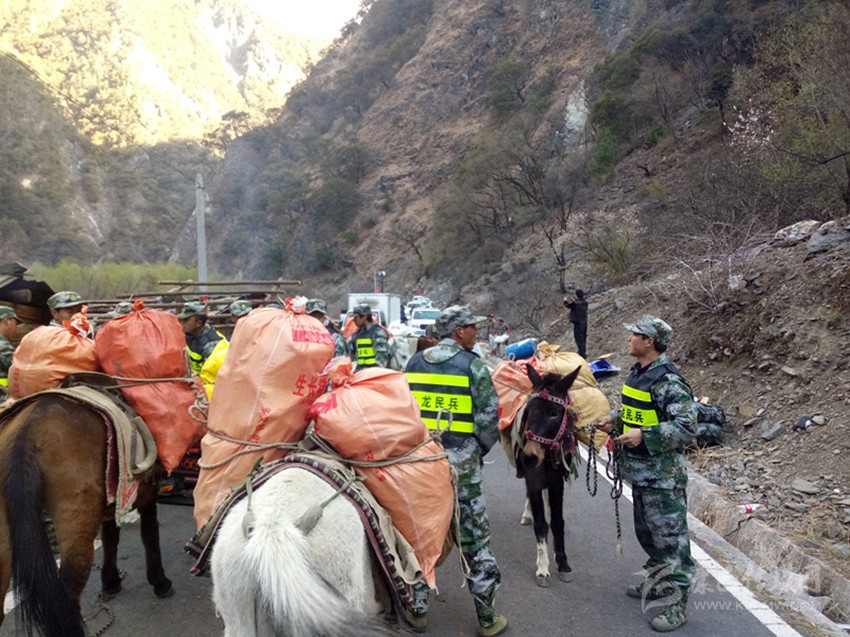 民兵背物資上山。