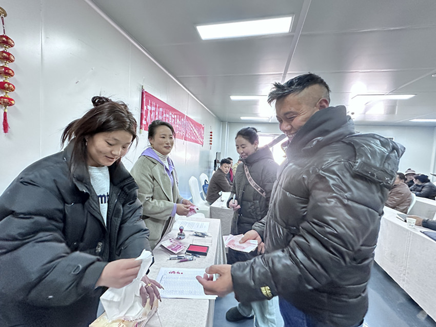 在隨后舉行的分紅儀式上,鄉(xiāng)黨委書記、公司負責人分別就合作方案、相關政策進行了宣講,還對集體經(jīng)濟進一步發(fā)展等進行了分析和總結,簽訂了深化合作協(xié)議。分紅現(xiàn)場,村民們有序地對賬、簽字、領取分紅,臉上洋溢著幸福的笑容。大家表示這一切都要感謝黨和政府的關心關懷和好政策,更加堅定了聽黨話、感黨恩、跟黨走的信心和決心。據(jù)悉,此次分紅主要是旺達村于2023年7月投入奶茶生產(chǎn)設備的收入,此次25戶群眾分得12500元現(xiàn)金,價值7500元的糌粑奶茶,共計20000元。