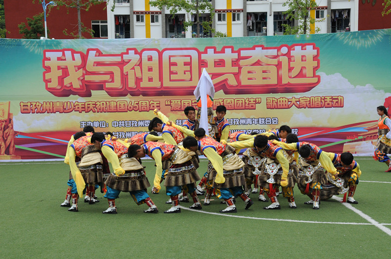 本網(wǎng)訊(羅絨志瑪 文/圖)9月27日,由州委宣傳部、團(tuán)州委、州青年聯(lián)合會(huì)主辦的“我與祖國(guó)共奮進(jìn)——甘孜州青少年慶祝建國(guó)65周年‘愛國(guó)、守法、感恩、團(tuán)結(jié)’歌曲大家唱”活動(dòng)在州職業(yè)技術(shù)學(xué)校舉行。