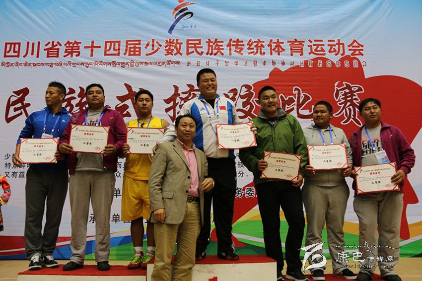 2014年11月4日—9日,四川省第十四屆少數(shù)民族傳統(tǒng)體育運動會在宜賓市隆重舉行。在此次民運會上,由138人組成的甘孜州代表團(tuán)代表112萬父老鄉(xiāng)親參加了本屆民運會射弩、民族式摔跤(格、北嘎、且里西、絆跤)、蹴球、押加、珍珠球、高腳競速、板鞋競速、陀螺、苗族手毽等9個競賽項目和競技類、技巧類、綜合類3個表演項目的比賽。