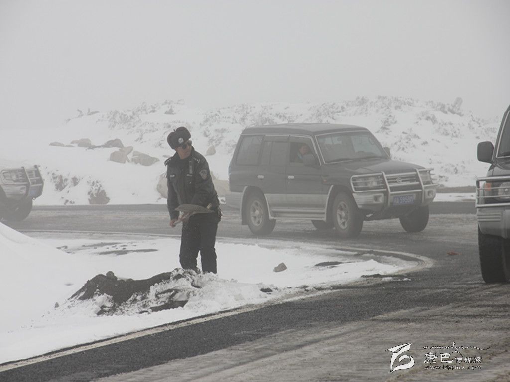 高高的折多山,氣候惡劣,有時(shí)竟七月飛雪。在風(fēng)雪中,處處可以看到王洛讓偉岸的身軀,因?yàn)橛辛怂麄兊膱?jiān)守,換來游客對(duì)甘孜交警的由衷贊嘆。