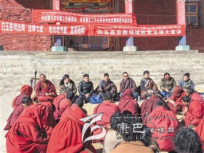 為了使普法工作常態(tài)化,鄉(xiāng)城縣組建了法律服務隊,常態(tài)深入鄉(xiāng)村、寺廟、草場開展法律服務。組建老干部宣講團,深入開展“法律七進”活動、“六五普法”、“送法下鄉(xiāng)”、“反邪教警示教育”、“蟲草、松茸季節(jié)法制宣傳”等活動。在寺廟僧侶中常態(tài)開展“一反兩講”、“三反三珍”宣傳教育等,引導宗教與社會主義社會相適應。多姿多彩、新穎生動的普法載體,組成了道道靚麗的法制宣傳風景線。