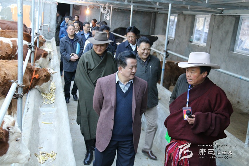 與會(huì)人員在雅江縣八角樓鄉(xiāng)王呷一村奶牛場考察。