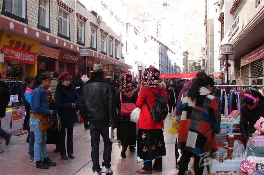 走在街上,一幅熱鬧的場景映入眼簾,熙熙攘攘的人群緩緩蠕動,來往行人大包小包的東西相互碰撞,市場內叫賣聲、討價聲與商店歡快的音樂交織在一起,一大早街上就有幾輛工具車裝滿了飲料、糖果等副食品,老板與顧客在討價還價。家家樂超市收銀員一邊忙著收錢找零一邊對筆者說:“這段時間生意真好,老百姓來買的多,且量還不少?!眮淼讲耸袌龈菬狒[非凡,生食店、熟食店、糖果鋪前來購買年貨的顧客擠得滿滿的,大人小孩,僧人牧民各自選著自己想買的年貨,沉甸甸的年貨提在手上喜在眉梢。 (尹東云)