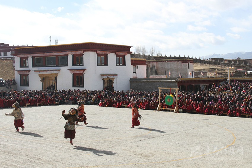 2月25日,是藏歷的12月29日,理塘縣長青春科爾寺舉行了盛大的“古多”儀軌活動(dòng)。僧人在寺廟廣場(chǎng)表演“羌姆”,各區(qū)鄉(xiāng)鎮(zhèn)農(nóng)牧民群眾近萬人匯聚于此,觀看表演。“羌姆”意為跳神,是藏傳佛教中融宗教性、藝術(shù)性為一體的法舞儀式,本地藏族群眾又稱其為“巴羌”,即“面具法舞”,寄寓了人們辭舊迎新、禳災(zāi)祈福的美好愿望。