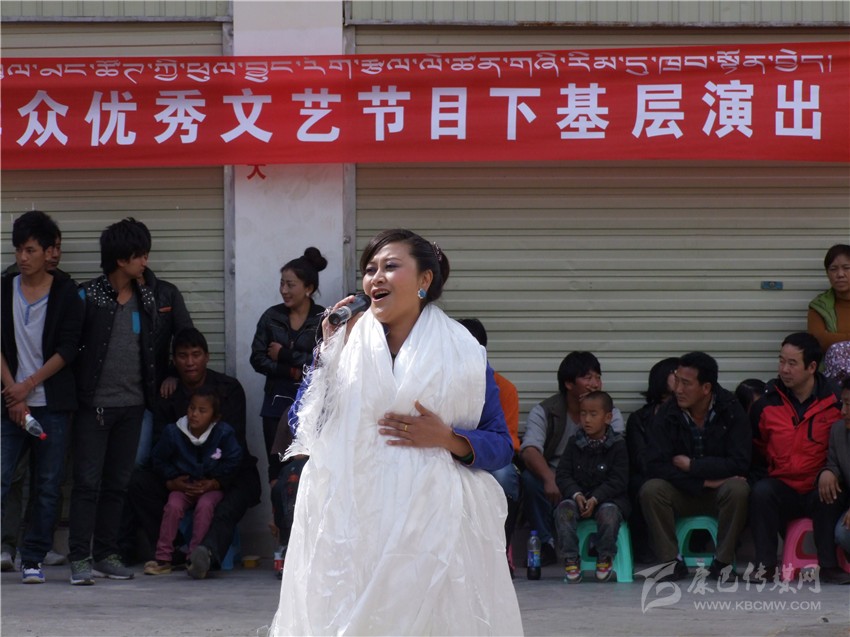 “2013年康巴兒女頌黨恩——甘孜州群眾優(yōu)秀文藝節(jié)目赴基層演出”活動相繼在稻城、得榮、鄉(xiāng)城、瀘定展開。3月的稻城,氣候依然寒冷,特別是稻城亞丁機(jī)場,這里海拔高,氣候惡劣,天氣變化莫測,對于格桑志瑪來講,到海拔4410米的地方演唱,是一個很大的挑戰(zhàn)。盡管如此,她希望通過自己熱情的演唱,能給建設(shè)者送去一絲溫暖。