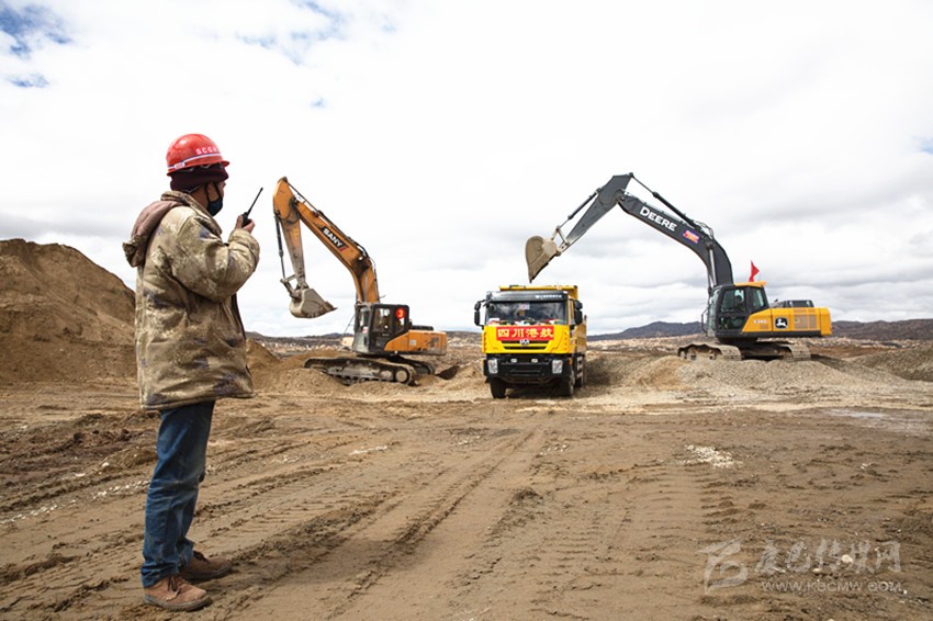 在四川省稻城縣海子山高海拔宇宙線觀測站建設(shè)現(xiàn)場,工人們在施工。