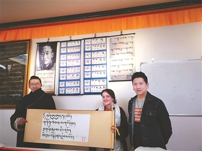 本網(wǎng)訊 前段時(shí)間,一篇微信文章《天空之城新玩法,老外學(xué)寫藏書法》刷爆了甘孜的微信朋友圈,法國(guó)女孩理塘學(xué)藏文書法的消息傳遍大街小巷。如今,這個(gè)叫寶林的女孩已經(jīng)回到法國(guó),她給教授她藏文書法的益西老師打來(lái)電話,感謝對(duì)她的教授。