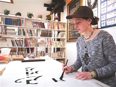 25歲的法國(guó)女孩寶林(中文名),環(huán)亞洲旅行剛到中國(guó)沒多久,在成都待了一星期后,想更多地探索藏文化的奧秘,于是來(lái)到理塘。在這個(gè)城市的任何角落都能感受到藏文化氣息的她,通過(guò)三完小藏族教師益西的介紹,4月19日來(lái)到理塘縣電子商務(wù)雙創(chuàng)孵化中心“扎納民族文化傳承基地”參觀,看到藏文書法那么美麗,就動(dòng)了參加“民族書法免費(fèi)培訓(xùn)班”的念頭。