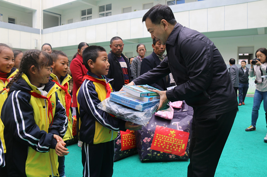 當天上午,“粵企代表為藏區(qū)困難群眾、貧困學生和留守兒童捐贈物資發(fā)放儀式”在康定市實驗小學舉行,廣東企業(yè)代表向該校20名留守兒童和困難學生發(fā)放了包括玩具、書包、圖書在內的節(jié)日禮物,向康定市的30戶家庭困難的群眾發(fā)放了棉被、洗漱包、保溫杯等慰問品。