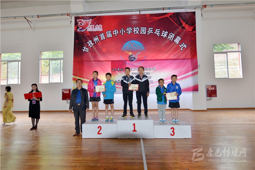 閉幕式上,乒乓球裁判長向全體運動員宣布:甘孜州首屆校園乒乓球賽圓滿結(jié)束,此次比賽成績真實有效,符合賽事組委會預先制定的競賽規(guī)則。周敏吉、邱志明、唐定成、翁義分別為獲得小學組、初中組、高中(中職)組獲得女單、男單、混合雙打前三名的運動員頒獎。
