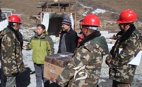 為打好今年交通攻堅(jiān)大決戰(zhàn),我州所有在建公路隧道冬季不停工,部分工程技術(shù)人員和民工將放棄春節(jié)與家人團(tuán)聚。日前,受州委、州政府領(lǐng)導(dǎo)的委托,州政府副秘書長、州交通協(xié)調(diào)辦主任高見在前往石渠走訪“親戚”途中,專程看望慰問了國道317線雀兒山隧道和省道217線石馬路海子山隧道的工程技術(shù)人員和民工,并轉(zhuǎn)達(dá)了州委、州政府領(lǐng)導(dǎo)的親切問候。圖為在海子隧道施工現(xiàn)場慰問時(shí)的場景。(本網(wǎng)記者 攝影報(bào)道)