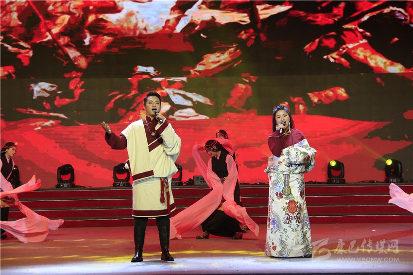 隨后以三個(gè)“新”字為主題的篇章,更是彰顯了民族風(fēng)情、甘孜風(fēng)格、時(shí)代風(fēng)貌。挖掘民族素材、彰顯民族文化,甘孜歌舞團(tuán)以格薩爾傳說為“藍(lán)本”,推陳出新表演的《格薩爾仲肯》,讓民族文化熠熠生輝;民族文化需傳承,少年強(qiáng)則甘孜強(qiáng)。德格縣中學(xué)少兒則噶表演的《吉祥頌》,讓人感到后生可畏,贏得陣陣掌聲;富有激情的朗誦、珠聯(lián)璧合的配樂,《甘孜與祖國(guó)相約出發(fā)》讓現(xiàn)場(chǎng)觀眾真切地感受到了盛世中華,真情贊美幸福美好的新生活;歌曲大聯(lián)唱《如歌歲月》通過不同時(shí)代的代表性歌曲,唱出了甘孜兒女愛祖國(guó)、愛家鄉(xiāng),感黨恩、思奮進(jìn)的真摯情懷;由州歌舞團(tuán)和爐霍、丹巴、德格、巴塘等縣藝術(shù)團(tuán)聯(lián)袂上演的《幸福大家庭》,既有漢族歌舞《祝福祖國(guó)》、藏族舞蹈《放牧人》、蒙古族舞蹈《送親》、彝族舞蹈《彝家情》、回族舞蹈《花兒》,更是彰顯了民族團(tuán)結(jié)的大主題,為我州創(chuàng)建全國(guó)民族團(tuán)結(jié)進(jìn)步示范州擂鼓助威。