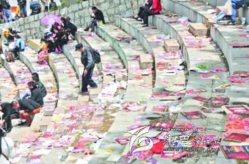 5月6日是康定縣一年一度“四月八”跑馬山國際轉(zhuǎn)山會,上萬人在跑馬山上祈福游玩。5月7日在一家爆料網(wǎng)站上一位網(wǎng)友發(fā)布了一篇名為《甘孜康定跑馬山萬人轉(zhuǎn)山會后垃圾遍野》的微博。微博原文中說:“2014年05月06日,四川省甘孜藏族自治州,滿負荷的垃圾桶。跑馬山景區(qū)垃圾遍野。當(dāng)天是農(nóng)歷四月八轉(zhuǎn)山會,景區(qū)免門票,至少有上萬游客涌入景區(qū),參加轉(zhuǎn)山會活動。”針對該網(wǎng)友爆料的情況記者走訪了康定跑馬山景區(qū)。在景區(qū)現(xiàn)場記者的確見到大量的垃圾“橫尸遍野”。藍天白云、青青草地真可謂詩情畫意,可是眼前的美景卻被無數(shù)的垃圾破壞。不知何時起旅游、垃圾仿佛成了連體嬰兒,甩也甩不掉,什么時候長假、旅游與垃圾才能隔離開來呢?帶著疑問記者采訪了景區(qū)相關(guān)負責(zé)人。