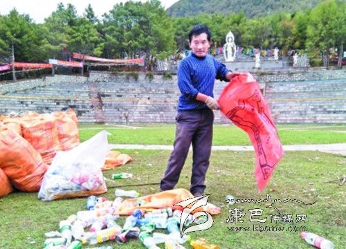 在接受記者采訪時跑馬山旅游開發(fā)有限公司董事長昂洛正在跑馬山跑馬坪和公司員工一同清理垃圾,昂洛說:“對于每年四月八后的‘垃圾’問題我真的很無奈,也很難過。跑馬山的景區(qū)規(guī)模有一定的局限性,每一次接待游客不能超過一萬人,要不硬件設(shè)施設(shè)備、安全隱患,當(dāng)然也包括環(huán)境衛(wèi)生都會出現(xiàn)問題。四月八這一天有一點特殊,這是一個當(dāng)?shù)氐拿褡屣L(fēng)俗節(jié)日,每到這一天都會有很多市民上山祈福,而且景區(qū)當(dāng)日不收門票。據(jù)不完全統(tǒng)計今年陸續(xù)上山的游客達到了3萬人以上,在某種意義上是超負荷了。景區(qū)也有載客量,硬件設(shè)施不夠用,也不能完全責(zé)怪游客亂扔垃圾,人多了景區(qū)的垃圾桶自然不夠用。傳統(tǒng)的四月八康定本地居民本來就有野餐的習(xí)慣,這是一種習(xí)俗,我們不能打破。吃東西當(dāng)然就會留下大量的垃圾,不經(jīng)意就會造成垃圾遍地的場面。”