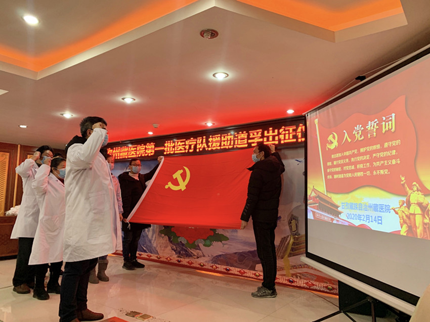 事實證明,州藏醫(yī)院的擔(dān)心和提前準(zhǔn)備完全是必要的。2020年2月,道孚縣爆發(fā)疫情,全縣進入管控狀態(tài)??粗约旱募亦l(xiāng)發(fā)生疫情,州藏醫(yī)院的醫(yī)護人員心急如焚。盡管對這未知的病毒心中沒底,但沒人退縮,全院上下皆積極請戰(zhàn)。在醫(yī)院黨委再次申請下,州抗疫指揮部研究同意了藏醫(yī)院參與抗疫工作,2月14日,在時任副院長、主任藏醫(yī)師江吉村的帶領(lǐng)下,藏醫(yī)診療隊奔赴道孚。這是新中國成立以來,藏醫(yī)首次參加的大型抗疫阻擊戰(zhàn)。