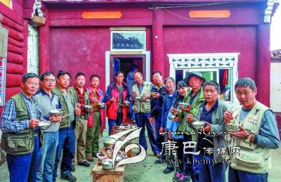 創(chuàng)作采風(fēng)期間,北部高原帶著泥土芬芳的生活深深地陶醉了隊(duì)員們,不知不覺,大家都成了早起晚歸,不辭艱辛的攝影人。每天早上4、5點(diǎn)起床是常事,夜幕四圍才吃晚飯更是習(xí)慣。團(tuán)結(jié)、協(xié)作、樂于助人成為一種自覺的風(fēng)氣:60多歲的趙文光老師退休前曾任過康定縣宗教局和縣政法委領(lǐng)導(dǎo),他成為采風(fēng)隊(duì)最好的藏語翻譯;身板硬朗的他還被稱為“能攆獐子”的人。隊(duì)員辛沂外出拍照的時(shí)間最多,走的地方也很多,外出經(jīng)驗(yàn)豐富,他精心準(zhǔn)備的常用藥品熱心幫助了許多人。唐保安老師工作時(shí)常到農(nóng)村牧區(qū)調(diào)研,日積月累的基層生活知識成了采風(fēng)中不可多得的向?qū)?。被譽(yù)為攝影后期制作高手的胡庭輝每天義務(wù)為隊(duì)友考貝蓄存卡,講解攝影知識。王明陽、游建中更是身體力行地作表率,吃苦在前,當(dāng)向?qū)Фㄅ臄z點(diǎn),心甘情愿地為隊(duì)友們服務(wù)。在宗塔草原民居接待站,高齡的代奇元老師和游建中不顧外出拍攝的勞累,主動熱心地親自下廚,為隊(duì)友們做出可口的飯菜。13日上午,藍(lán)色中巴在海拔3600公尺的老折山爆胎,州攝協(xié)主席,也是這次帶隊(duì)的郭昌平身先士卒,帶領(lǐng)會修車的胡庭輝、黃元康等不顧高山缺氧,積極幫司機(jī)換輪胎。離開宗塔草原最后一晚,原本安排此行唯一一次早上8點(diǎn)起床,讓隊(duì)員們好好休息一個(gè)早上,沒想到不到早上6點(diǎn),全體隊(duì)員無一遺漏地都起床追光逐影拍照去了。來自四川民族學(xué)院的黃元康外出拍照返回,還忙著幫中巴車?yán)顜煾挡料窜噹@顜煾翟趧?chuàng)作采風(fēng)期間也深受感染,這天也沒在床上呆住。他對筆者說:這段時(shí)間和你們早晚相處,才知道攝影創(chuàng)作有多辛苦,你們的吃苦耐勞精神不得不讓人佩服。我今早上也睡不著呀,起來擦洗車廂,也想讓你們路途中乘坐得舒服一點(diǎn)……
