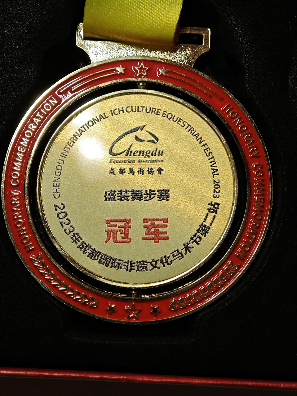 2023年6月,獲2023成都國際非遺文化馬術(shù)節(jié)(第二站)盛裝舞步賽初三組冠軍。
