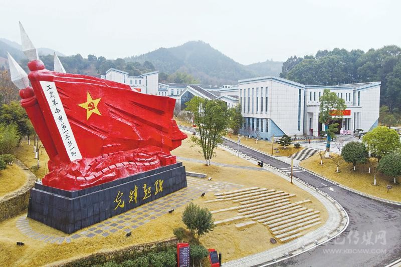 廣場東南方,以工農(nóng)革命軍第一面軍旗、萬里長城、毛澤東詩詞《西江月·秋收起義》為主要元素的“光輝起點”紅旗雕塑異常醒目,展示著這個湘贛邊鄉(xiāng)鎮(zhèn)的紅色基因。