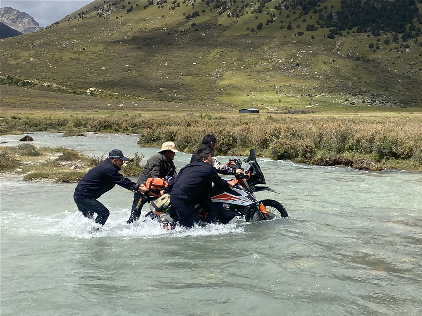 理塘輔警和牧民跳入齊膝深冰河救援被困騎友。