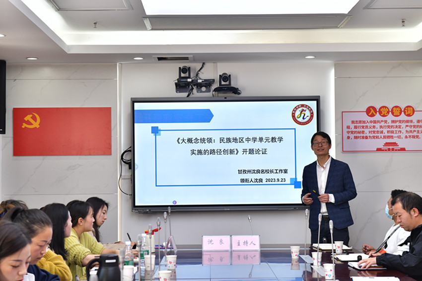 除了以上良策,沈良在擔(dān)任我州名校長(zhǎng)工作室領(lǐng)銜人時(shí),還注重我州教育事業(yè)的全面均衡發(fā)展。基于工作室成員有來(lái)自九龍、雅江、丹巴、鄉(xiāng)城等地的教育工作者,沈良以州級(jí)課題大概念統(tǒng)領(lǐng):“民族地區(qū)中學(xué)單元教學(xué)實(shí)施的路徑創(chuàng)新”為載體,開(kāi)展了系列活動(dòng)探索全州教育教學(xué)改革,高效助力全州教育現(xiàn)代化發(fā)展。