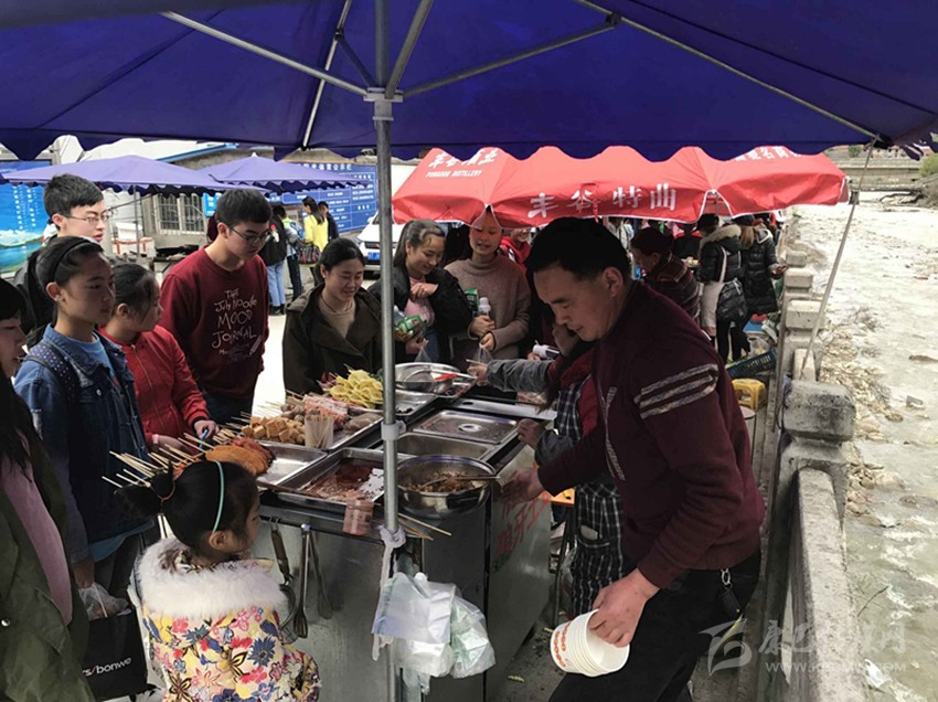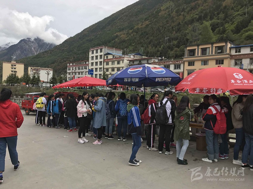 那么真實情況到底如何呢?7日,記者專門來到康定中學走訪調查。記者搭乘出租車前往學校,途中司機卻回應“康中校門口那一段全是賣炸洋芋、炸雞腿的攤攤,車子根本開不過去,只能提前下車?!碑斢浾卟叫羞^橋到達校門口路段時,雜亂無序而又異常喧鬧的場面立刻映入眼簾。約摸十來家燒烤油炸“流動攤點”上,商販們手中的烤具上下翻飛,幾十名身著“康定中學”校服的學生駐足其間,從校門出入的車輛不斷鳴笛避讓??久娼睢⒄ㄍ炼?、烤雞腿,濃濃的油煙、各種調料混合的氣味、滋滋的油炸聲……儼然一副“美食街”的火爆景象。