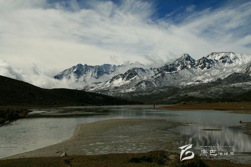 有水的湖泊就像一面鏡子。當(dāng)同行的夏嘎德在田海子里終于看到一塊有水的小水凼并吸引大家都在那里攝田海子對面的雅加埂山(群山)及其倒影時(shí),我悟到了有水的湖泊在美學(xué)領(lǐng)域所具的獨(dú)特價(jià)值。