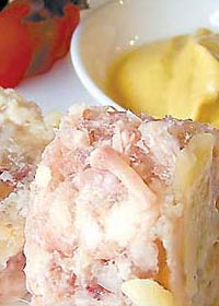彝族風味肉凍,這是彝族地區(qū)較為講究的一種菜肴。它采用豬蹄和肘子制做而成。一般做法是將肉放入鍋內煮軟后撈起,剔去骨頭并將肉宰碎,放上木姜、生姜、花椒等佐料,有的還放橘子皮,或雞蛋之類的東西,然后放回鍋里煮上一陣,以便使佐料滲入肉中,最后放入木缽內,放上一夜即成。肉凍柔軟可口,香味獨特,是彝族十分喜愛的一種食品。