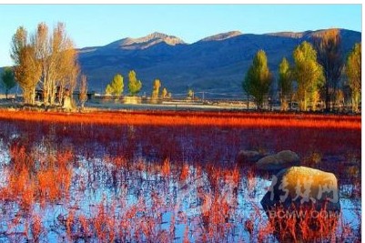 距稻城縣城金珠鎮(zhèn)28公里的桑堆小鎮(zhèn)風(fēng)景綺麗,在公路沿線的牧場(chǎng)開闊平展,河流平緩如鏡。遙望遠(yuǎn)處,在起伏的山巒間散落著村落、牧人、牛羊,呈現(xiàn)一派寧靜祥和的景象。公元1144年前,一世噶瑪巴·都松欽巴覺悟贊譽(yù):“我走遍藏區(qū),來到此地。這里風(fēng)景秀美,牧草豐茂,六畜興旺,佛光普照。我愿在此修建寺廟成就功德”。金秋十月的桑堆紅草灘總是讓你感覺膠卷不夠用?!?/p>